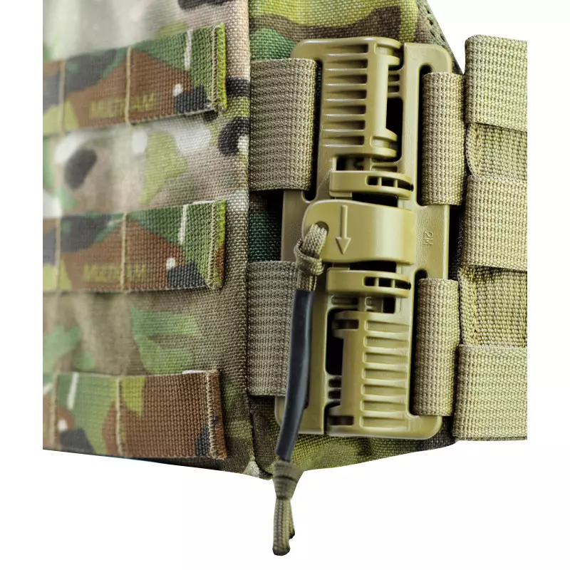 - Système de dégagement rapide Egress™ amovible afin de changer de cummerbund ou de boucle de bretelles (pour un côté plus low profile et une épaule dégagé pour l'utilisation d'arme longue.