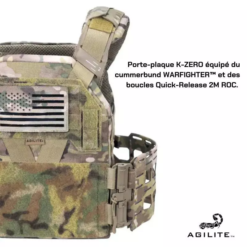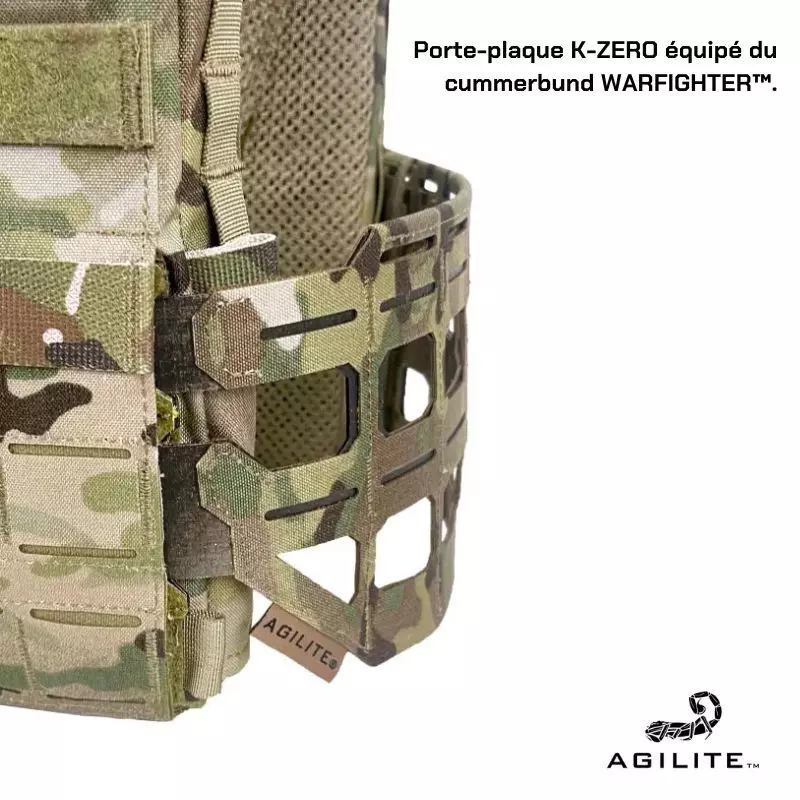 - Pour votre confort, le cummerbund Warfighter™ s'étire pour accompagner vos mouvements, mais ne s'affaisse pas malgré la charge.