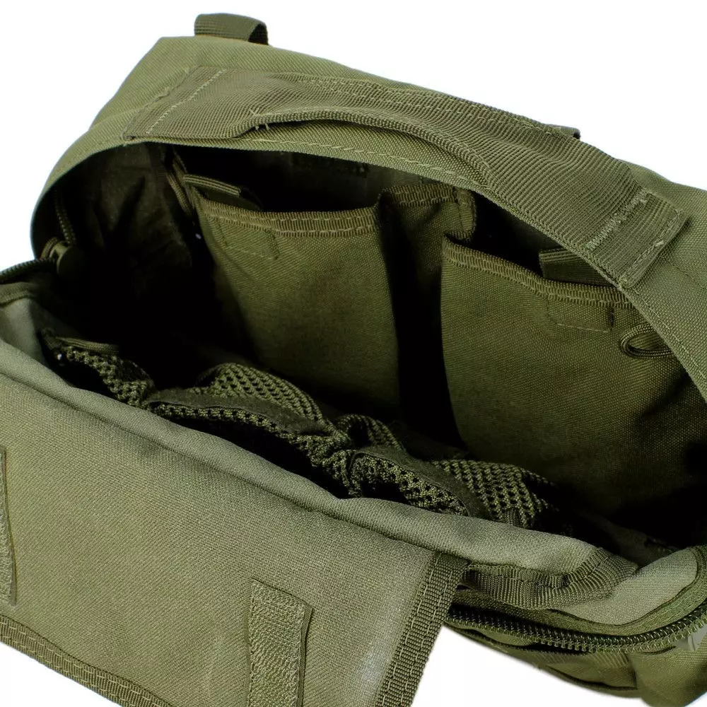 L'Utility Shoulder Bag est un petit sac de rangement compartimenté avec système MOLLE et sangle de transport amovible.