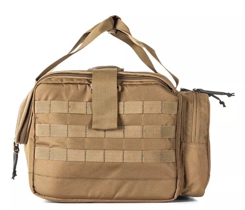 Le sac d'entraînement Range Ready a l'espace nécessaire pour contenir tout ce dont vous avez besoin pour une journée au stand de tir. Entièrement rembourré, il est doté d'une base en panneaux de polyéthylène qui protège votre équipement, tandis que les séparateurs amovibles vous permettent de personnaliser le sac. Le panneau élastique interne d'accès rapide aux chargeurs et aux accessoires, ainsi que les boucles élastiques sous le couvercle, vous permettent de transporter votre matériel partout où vous allez, et ce, uniquement dans le compartiment principal. Trois compartiments latéraux et des sangles MOLLE vous permettent d'emporter encore plus.