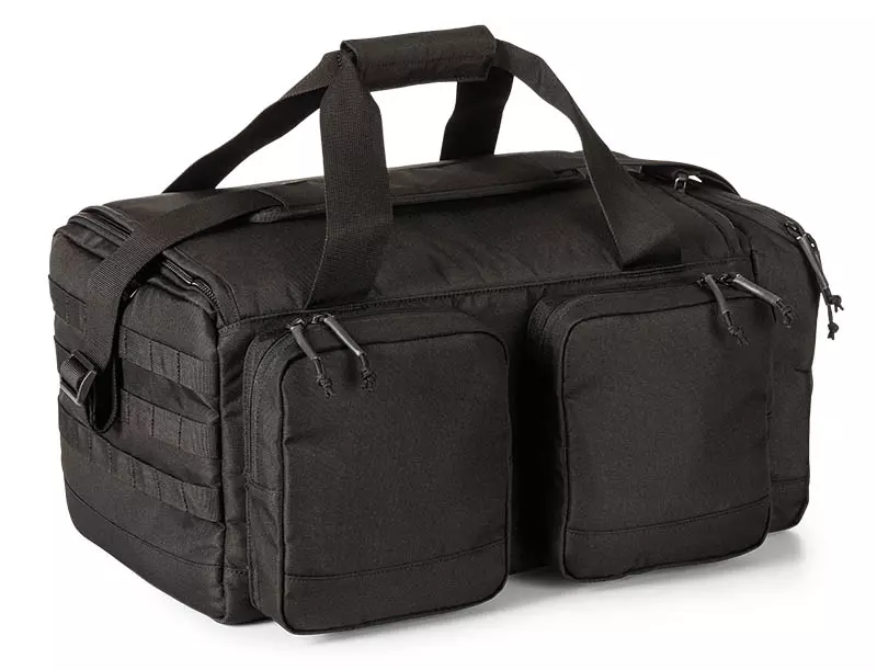 Le sac d'entraînement Range Ready a l'espace nécessaire pour contenir tout ce dont vous avez besoin pour une journée au stand de tir. Entièrement rembourré, il est doté d'une base en panneaux de polyéthylène qui protège votre équipement, tandis que les séparateurs amovibles vous permettent de personnaliser le sac. Le panneau élastique interne d'accès rapide aux chargeurs et aux accessoires, ainsi que les boucles élastiques sous le couvercle, vous permettent de transporter votre matériel partout où vous allez, et ce, uniquement dans le compartiment principal. Trois compartiments latéraux et des sangles MOLLE vous permettent d'emporter encore plus.
