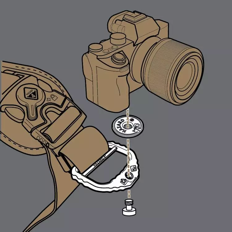 - Anneau en D breveté 1/4"-20 D-ring sur la bandoulière, pour fixer votre appareil photo, (vis et pad non inclus, sur commande) (voir photo)